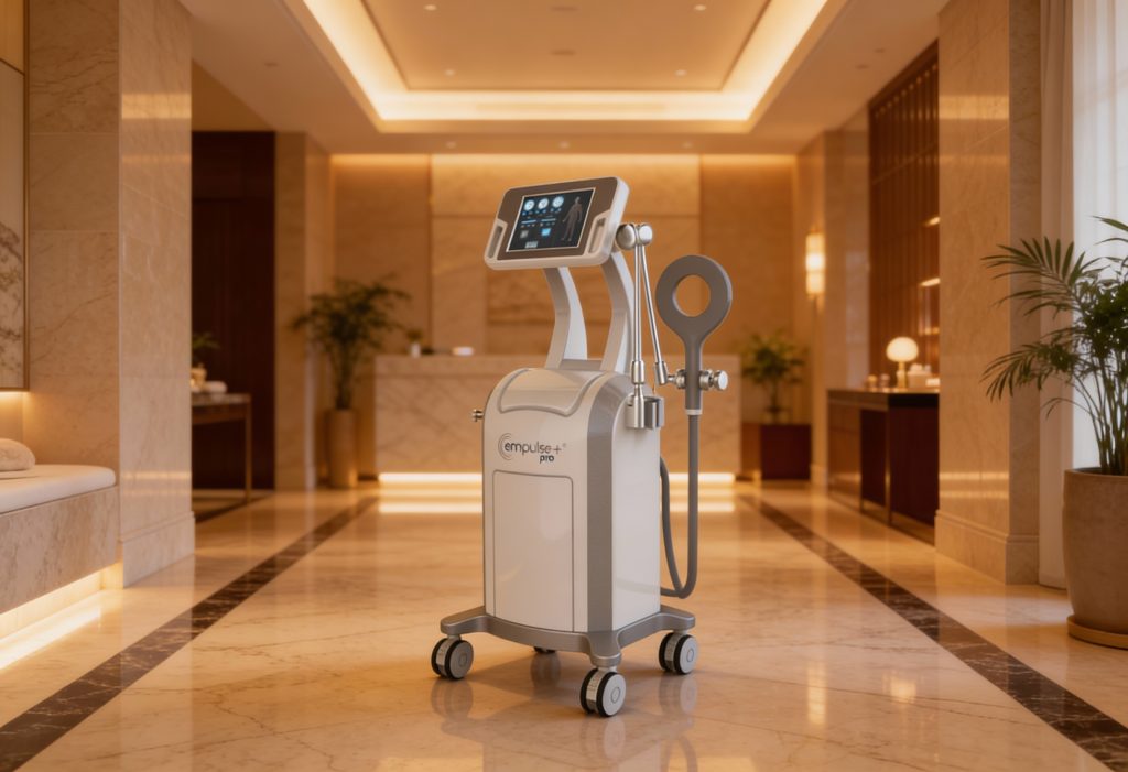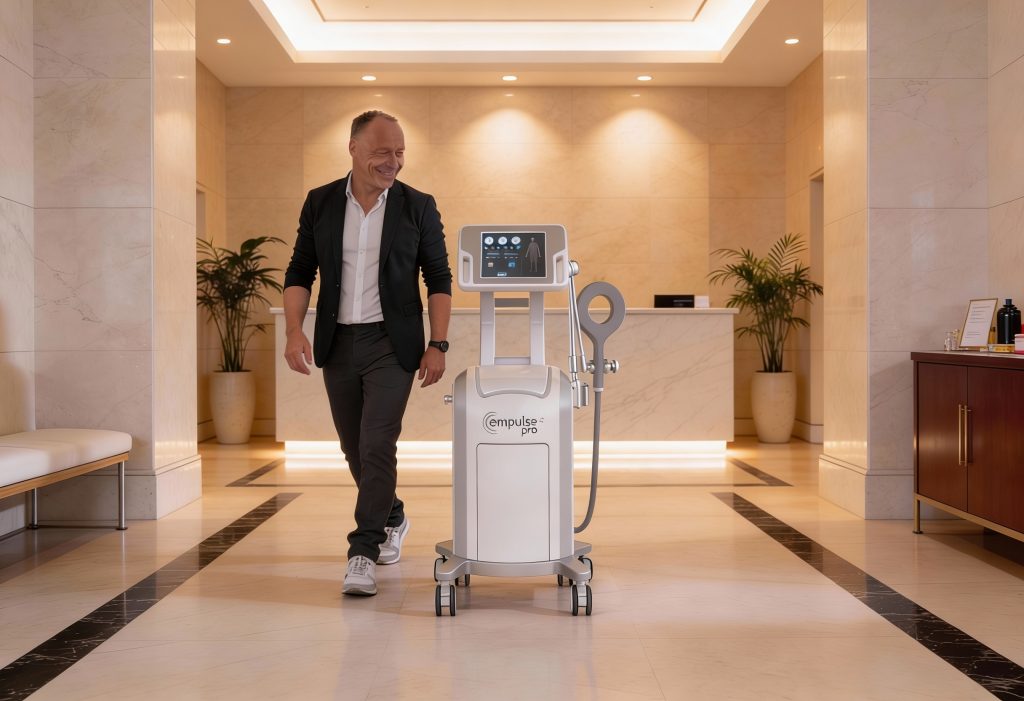 „Ja. empulse PRO+® ist kompakt und platzsparend konzipiert. Das System benötigt keinen eigenen Behandlungsraum und kann flexibel in Spa-Bereichen, Ruhe-Lounges oder separaten Wellness-Zonen aufgestellt werden.“
